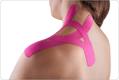 Muscles constantly extend and contract within a normal range during everyday activity. However, when muscles over-extend or over-contract, such as when lifting an excessive amount of weight, muscles cannot recover and become inflamed. When a muscle is inflamed, swollen or stiff due to fatigue, the space between the skin and muscle is compressed, resulting in constriction to the flow of lymphatic fluid. This compression also applies pressure to the pain receptors beneath the skin, which in turn communicates "discomfort signals" to the brain. This type of pain is known as myalgia (or muscular pain) and tape can be applied to the pain area as a single strip "I", or in the shapes of an "X" or "Y" depending on the shape and size of the targeted muscle(s). The basic principle of therapeutic taping for weakened muscles is to wrap the tape around the affected muscle(s). Start from where the muscle begins [ORIGIN], continue along the muscle and finish where the muscle ends [INSERTION]. This particular application process is typically used for supportive purposes. As the muscle fibers contract, taping supports the contraction by stimulating the skin and pulling the muscle back towards the point of origin.